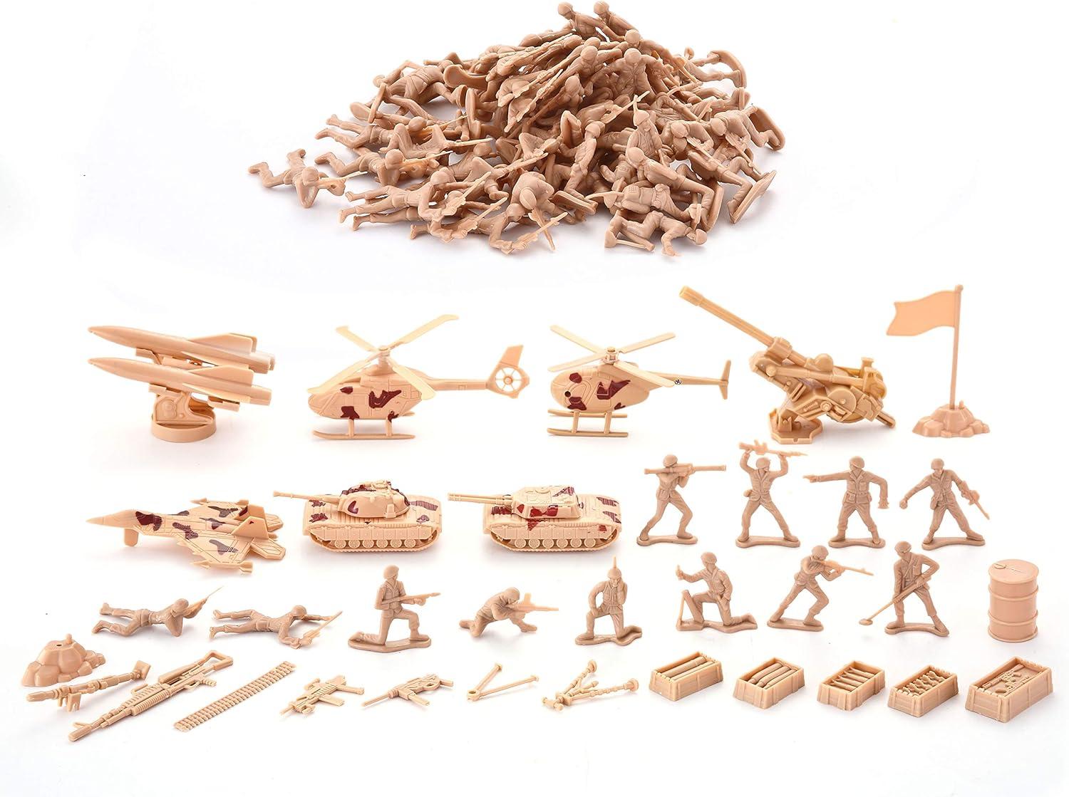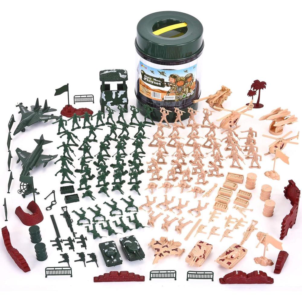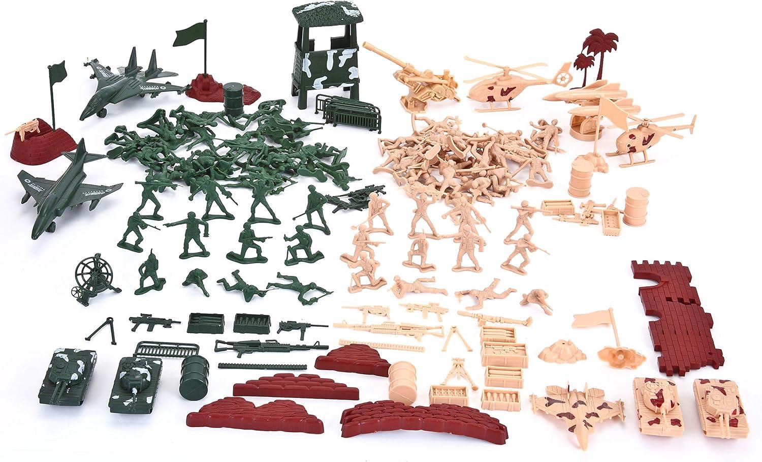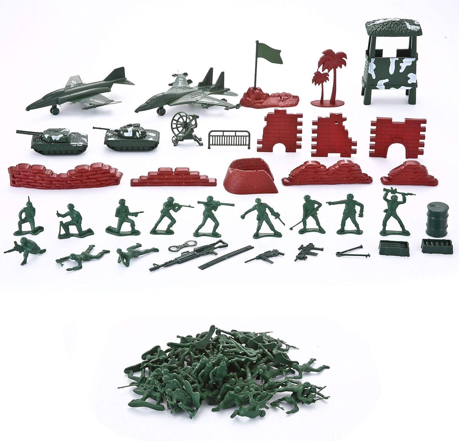 SUPER VALUE with 164 Pcs Military Soldier Playset Army Action Figures Battle Group Deluxe Military Playset. Including Soldiers, Fighter Aircrafts, Helicopters, Tanks, Trucks, Fences, Sandbags, Stones, and Other Battle Filed Equipment.