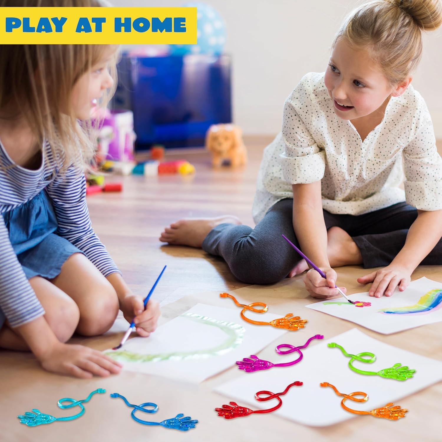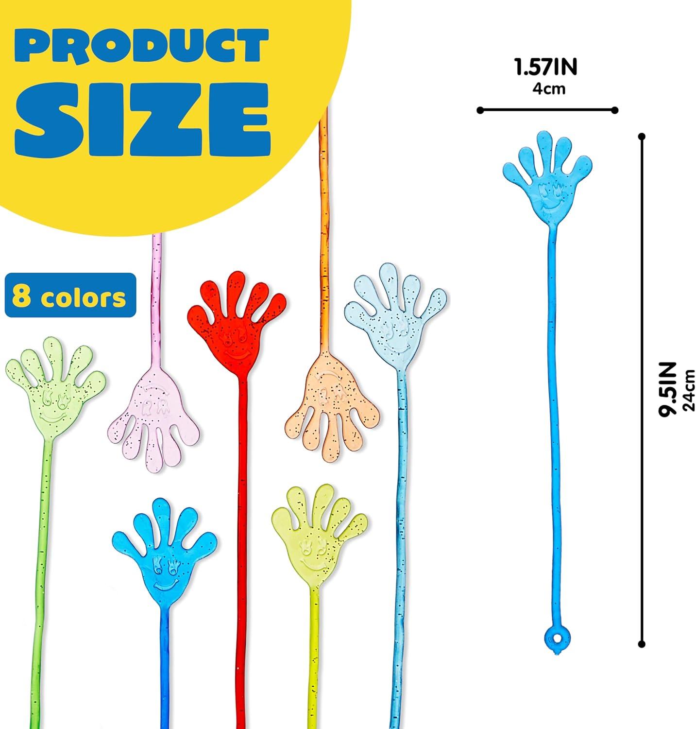 48-PACK STICKY HANDS PARTY FAVORS: Get 48 pieces of colorful and glittery sticky hands that stretch up to 8 feet!